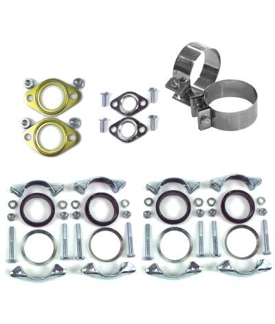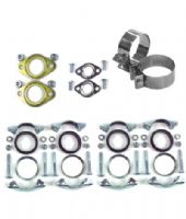 Sisältää vaimentajan asennussarjan lisäksi myös piippujen klemmarit tiivisteineen sekä lämmönvaihtimen ja pakoputkiston väliin tulevat isot leveät klemmarit.