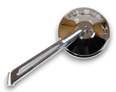 Tämä korkealaatuinen jäljennös alkuperäisestä aero-ovipeilistä on valmistettu kiiltäväksi kromatusta metallista ja varustettu tukevarakenteisella varrella. Muotoilu ja mitoitus vastaavat 1950-luvun loppupuolen VW Karmann Ghian ja Porsche 356 A -mallien alkuperäistä tyyliä.