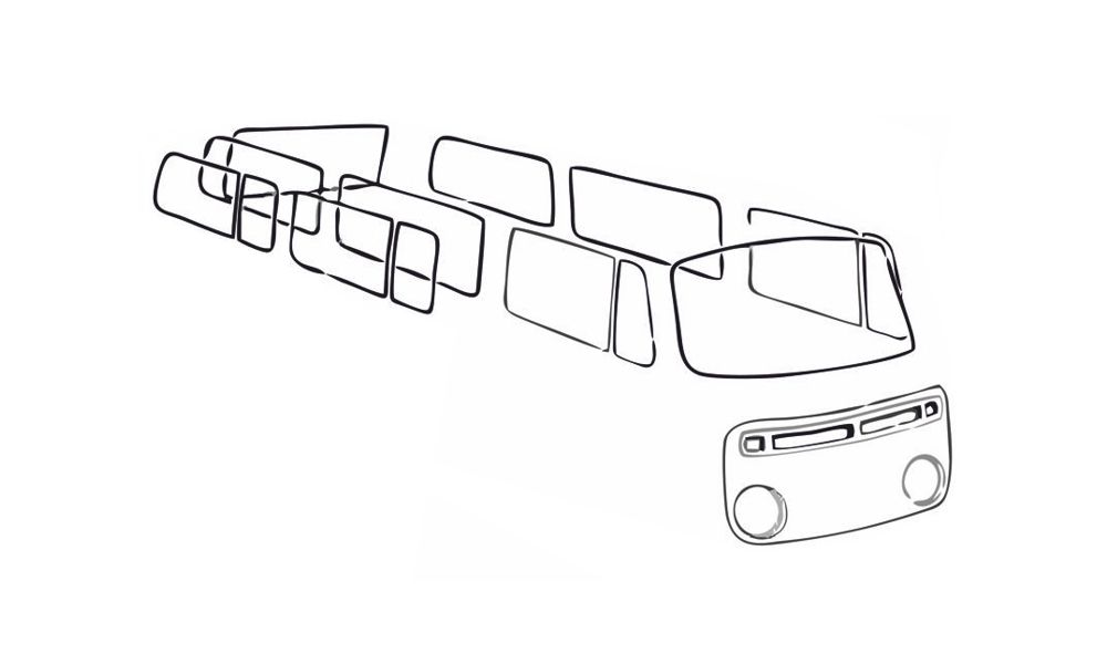 Saksassa valmistettuja huippulaatuisia ikkunantiivisteitä T-2seen. Tiivisteissä ura kromilistoille.
