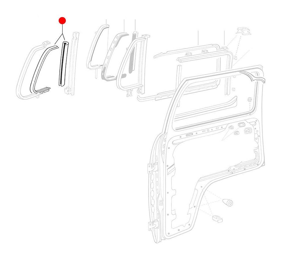 Sisäpuolinen ovilasitiiviste, vasen