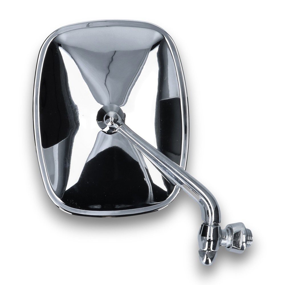 Nämä klassisen malliset T2-ovipeilit ovat tarkkoja jäljennöksiä alkuperäisistä Volkswagenin peileistä, joita käytettiin vuosina 1968–1979. Peilit on valmistettu ruostumattomasta teräksestä ja viimeistelty peilikiiltäväksi, joten ne kestävät aikaa ja säilyttävät tyylinsä myös sään armoilla olevissa autoissa.