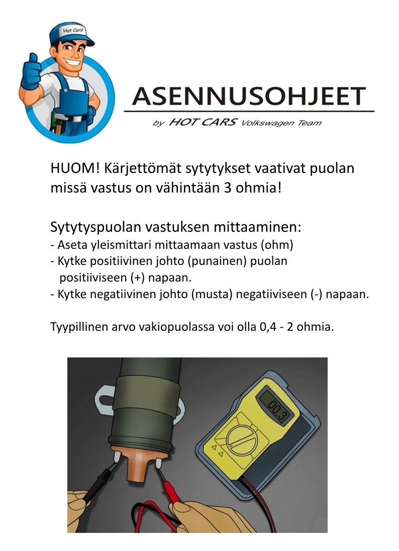 – Vaatii sytytyspuolan, jossa sisäinen vastus yli 3 ohmia
